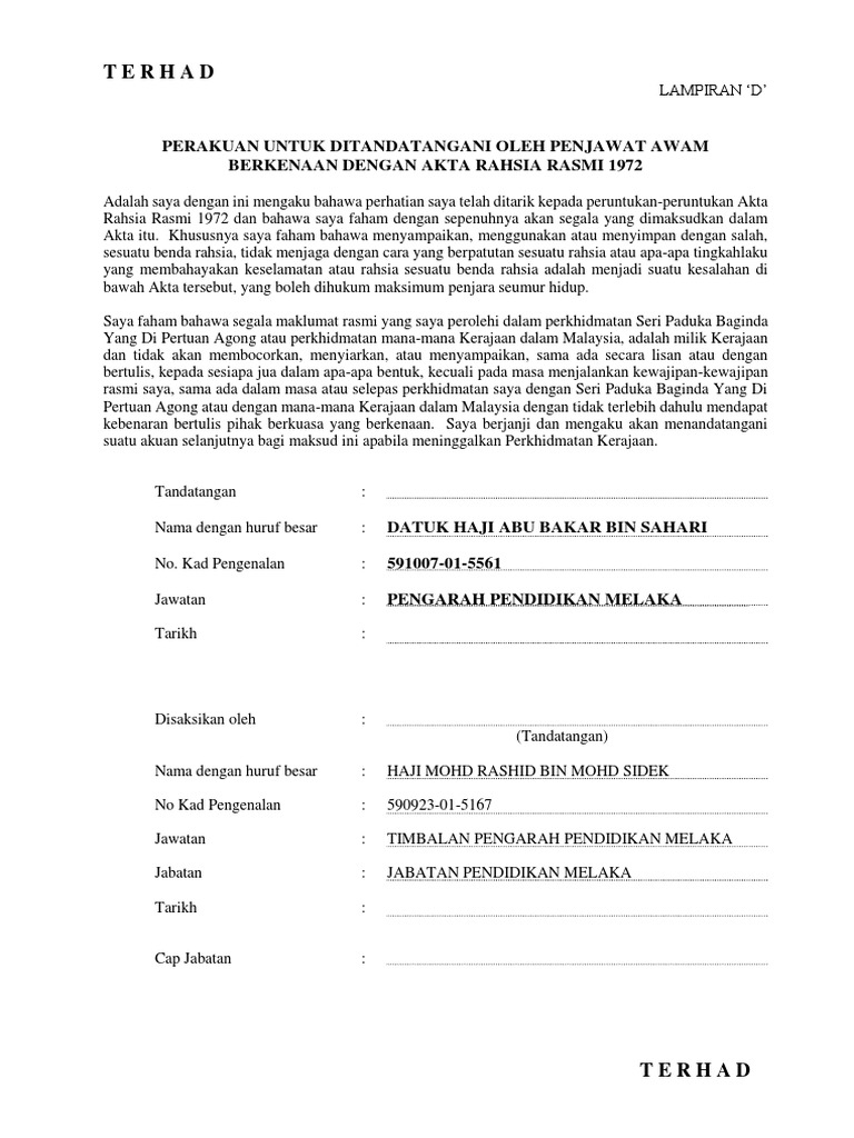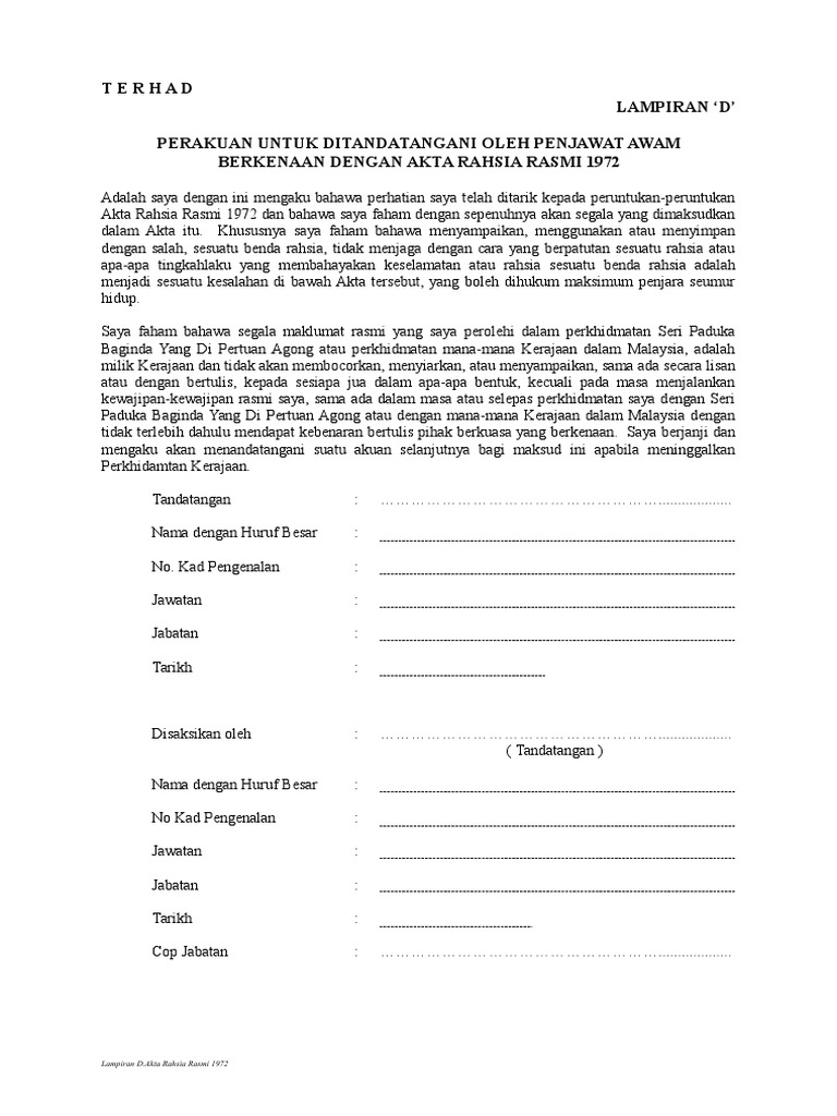 Akta Rahsia Rasmi Pdf Terhad Lampiran D Perakuan Untuk Ditandatangani Oleh Penjawat Awam Berkenaan Dengan Akta Rahsia Rasmi 1972 Adalah Saya Dengan Course Hero